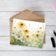 Charming postcard featuring a botanical illustration of a wildflower meadow with yellow coneflowers, white daisies, and lush green grass. Perfect for sending nature-inspired greetings or collecting as floral stationery.