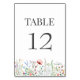Guide guests effortlessly with this beautifully designed wildflower meadow wedding table number. The elegant watercolor florals at the base bring a soft botanical charm to your reception tables, ideal for rustic, boho, garden, or countryside weddings. Printed on quality cardstock, it pairs perfectly with coordinating wildflower invitations, menus, and signage. Customize table numbers easily for a consistent, stylish decor flow throughout your event.
