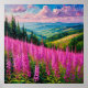 Colorful wildflowers in an expansive meadow overlook a scenic mountain view, showcasing an impressionist oil painting technique with vibrant textured brushstrokes conveying natural beauty.