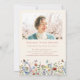 This is an elegant and modern funeral invitation card to celebrate the life of your loved one. The design features a beautiful calligraphy font and lovely wildflowers in pastel pink, purple, blue, yellows and rust reds or terracotta and also delicate fluttering butterflies. This celebration of life invitation can easily be personalized with your own photo and text to create a special tribute for your loved one's funeral, memorial or celebration of life using the template provided.