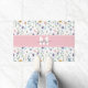 Personalized Elegant Wildflower Monogram Welcome Doormat. Add a warm and inviting touch to your entryway with this elegant welcome doormat, perfect for a home, apartment, or even a college dorm room. The design features a delicate wildflower pattern in pastel shades of pink, purple, blue, yellow, and green on a clean white background. A pink bar stretches across the design with a white and gray monogram at the center, creating a graceful and personalized accent.