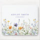 This design features a watercolor border of wildflowers in bold shades of purple, green, orange, and gold. Personalize with your name and business information.