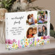 Country wildflower photo block personalized with your custom text, such as "our beautiful family" and the first names of your partner, siblings, kids, in-laws and/or grandchildren for example. The photo template is ready for you to include 4 of your favorite photos, which are displayed in rounded square shapes. The design features delicate watercolor meadow wild flowers in pink orange purple blue and yellow. It is lettered with casual modern script and whimsical typography. Feel free to change the font or background color to suit (click "edit using design tool").