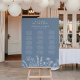 Guide your guests to their table with this beautiful seating chart. Featuring delicate wildflower illustrations in soft periwinkle blue, this design adds a graceful and romantic touch to your celebration. Perfect for garden or rustic-themed wedding, it sets the tone for a warm and inviting event. Personalize with the couple’s name and event details for a thoughtful, customized touch. A stunning addition to your décor that beautifully complements your special day!