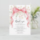 Celebrate your baby girl's special day with our exquisite pink floral baptism invitation. This charming design features a delicate croquette pink bow elegantly framed by soft pink flowers, creating a beautiful and inviting aesthetic. Perfect for announcing this sacred occasion, this invitation sets the tone for a memorable celebration filled with love and joy. Make your little one's baptism unforgettable with this enchanting invitation that captures the essence of purity and grace.