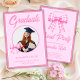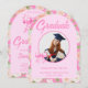 Wildflower Pink Gingham Bow Arch Photo Graduation Invitation