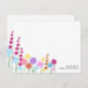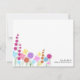 Pretty personalized note cards with stylized wildflowers in pink lilac yellow orange and blue. The wild flowers are growing as pinwheel in a border on both sides of the card. The template is set up for you to personalize with your name and/or custom text.