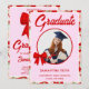 Wildflower Red Gingham Bow Photo Graduation Invitation