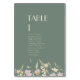This Wildflower Sage Deco wedding table number sign with guests evokes a cute, traditional floral and vintage spring garden vibe for your wedding. The dusty rose, blush pink flowers against the moss, sage green and cream backdrop creates a rustic but modern antique boho style for your marriage celebration.