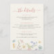 Elegant rustic boho chic watercolor botanical floral spring summer wedding guest details insert card with a trendy handwriting calligraphy script and a pastel pink and soft yellow cream champagne color palette.
