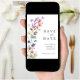A modern and elegant wedding save the date in spring summer wildflower theme. Featuring colorful watercolor peach, blush pink, lavender, yellow and dusty blue florals and botanical with butterfly and dragonfly. It has a monogram and an editable wedding website and photo at the back. You can delete text if not needed.