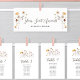 Wildflower Boho Chic Modern Whimsical Floral Wedding Table Number Seating Charts Card with Guest Names. All the texts are pre-arranged for you to personalize easily and quickly with your own details.