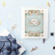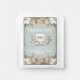 This design features a beautiful wildflower arrangement along the outer edges with a sweet floral tea cup in the center. The background is a robin's egg blue. Other colors include cream, orange, peach, pale pink and white.