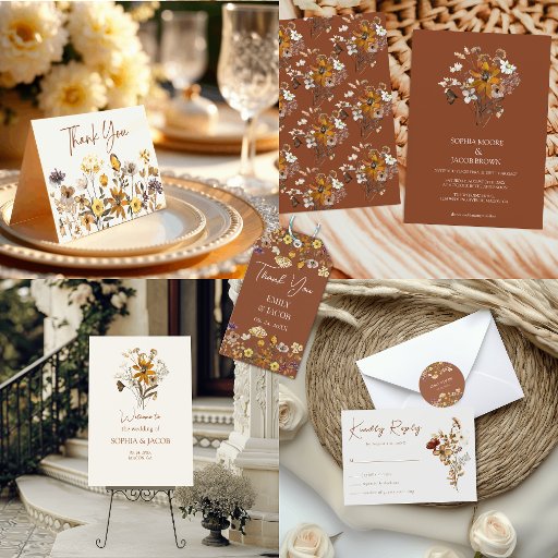 Wildflower Terracotta Boho Chic Garden Wedding Acrylic Invitations