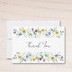 This floral thank you card is decorated with delicate watercolor flowers and foliage in pastel colors. Thank You is written in stylish script typography.