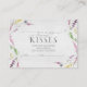 Modern, elegant bridal shower game "guess how many kisses" featuring watercolor wildflower motifs in soft shades of blush pink, lilac and lavender, yellows, blues and delicate green botanical leaves. Personalize your bridal details in soft off-black, accented with beautiful modern hand lettered calligraphy. Part of a co-ordinated suite. See full collection here: https://www.zazzle.com/collections/elegant_wildflower_watercolor_floral_bridal_shower-119635760261893795 contact designer for additional products. Copyright Elegant Invites, all rights reserved.