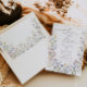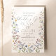 Plain white envelopes are included with paper invitations and will come to fit the invitation size you select. If you don’t need the envelopes, you may choose to not receive them by selecting the dropdown below "Envelopes" and choosing "None." If you’d like to have a design on your envelopes, you can browse all of these available envelopes to find the design that complements your Wildflower Wedding Invitation Template.