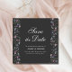 Wedding Save the Date Card with purple Wildflower design on a charcoal background.
