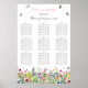 Pretty, summery and bohemian, this wedding day seating plan or chart features a bright botanical design of colorful watercolor wildflowers with butterflies, bumble bees and ladybugs.