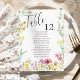 Wildflower Wedding individual table seating charts with delicate wild flowers and beautiful calligraphy. This pretty watercolor wildflower design has dainty meadow flowers in pink lilac orange blue and yellow. Perfect for spring and summer themes from country floral garden to organic boho. If you would like matching products, please browse my Wildflower Meadow collection or message me to add the design templates you need.