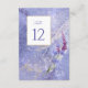 This elegant wedding collection uses a striking color palette including periwinkle, plum and soft blues to create matching stationery and party supplies for your special day. Watercolor florals and sparkling paint strokes provide eye-catching backgrounds. Handwritten script paired with a classic serif font lend a modern touch. The wedding 'Table Number' card shown here provides a sparkling background texture and a template to easily add your own number, initials and wedding date. Search ID954 to see other pieces and color choices for this set.