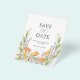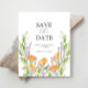 Announce your engagement beautifully with this budget wedding save the date invitation, featuring botanical watercolor greenery, soft lavender, and delicate orange florals. The modern simple design showcases simple elegant calligraphy script paired with a non-photo layout—perfect for couples seeking a timeless yet boho touch.