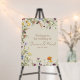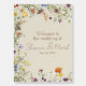 The Wildflower Wedding Welcome Sign is not only visually captivating but also serves a practical purpose. The text, elegantly scripted, welcomes guests with a warm and inviting message, setting the tone for the joyous celebration ahead. The choice of font complements the overall design, enhancing the cohesive and sophisticated look of the sign.