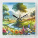 Wildflowers and Stream in Spring Valley Square Wall Clock