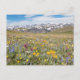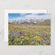 This postcard featuers a photo of wildflowers against a mountain backdrop at Beartooth Pass in Wyoming.