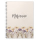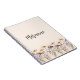 A beige colored background. Decorated with yellow and purple wildflowers. Personalize and add your name. Gray handwritten style script.