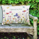 Watercolor Butterflies in a field of wildflowers and soft bokehrings with your optional text. (Or just remove it). This Pillow gives a sweet summervibe, almost like you can feel the warm breeze and happy summersounds. The backside is muted mint bluegreen the same color as the text, with a feminine Script font and some butterflies.