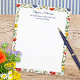 These elegant writing paper sheets feature a colorful border design of wildflowers, adding a fresh and summery touch to your stationery. With plenty of white space for writing, these sheets are ideal for individual correspondence. Each sheet is personalized, at the top on the front side, with your name and address.
