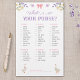 This baby shower game card is What's in your purse? The design features watercolor wildflowers, lavender, daisies and whimsical geese. Personalize the back of the cards with a name. Matching products available.