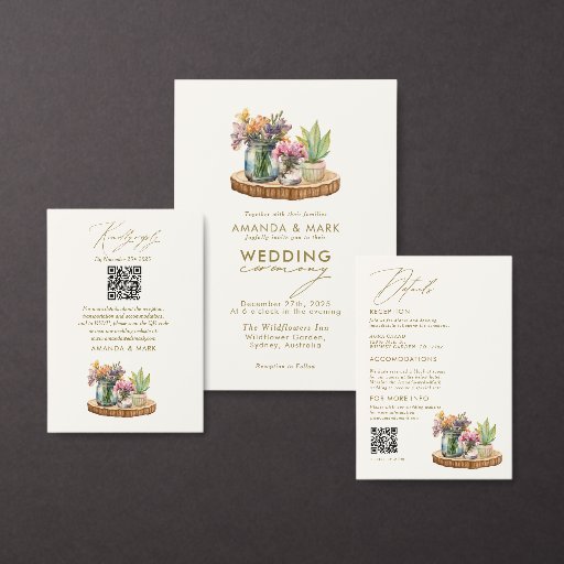 Wildflowers Mason jar Boho bohemian weddingDesigned by BiAs Shuja