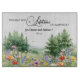 An elegant watercolor meadow landscape with mountains and wildflowers. Customize the names of the couple and the date to create a unique wedding gift.