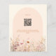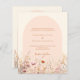 An elegant wedding invitation. A cream, beige colored background and a peach colored arch. Decorated with watercolored wildflowers in beige, pink.