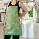 Orange flowers pattern custom name green apron for thanksgiving party.