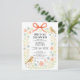 Celebrate the bride-to-be with this charming and nature-inspired bridal shower invitation! Featuring a whimsical watercolor design of soft peach and blue florals arranged in a graceful arch, this invitation is adorned with two sweet birds and a delicate coral bow at the top—evoking the feeling of a spring garden in full bloom. The elegant serif font adds a classic touch to the layout, making it perfect for a warm, heartfelt gathering. Ideal for outdoor or garden-themed bridal showers, this invitation sets the tone for a beautiful and memorable celebration. Personalize yours today to honor the bride in style!
