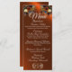 The front features wildflower bouquets in beautiful autumn colors on a copper background with the menu details and linked leaf monogram. The back has a placeholder for the linked leaf monogram also. Changing the fonts can create more elegant or rustic look. Available in several colors for your wedding theme. Designed to coordinate with Rustic Wildflowers & Ribbon Collection. To change details, click «Personalize». To move the text or change the text size, font, or color click «Click to customize further»