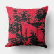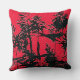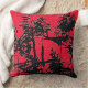An abstract art design of black wildflowers silhouetted against a red sky.