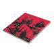 An abstract art design of black wildflowers silhouetted against a red sky.
