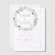 Elegant wildflowers wreath translucent vellum paper wedding save the date with a simple and minimalist design and with a mix of a script and serif fonts. The design features pretty flowers and green leaves, ideal for a floral or greenery spring or summer wedding. Please check the collection for matching suite stationery products.