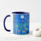 Coffee mug in a fantasy scene of wildflowers in the forest, under the full moon, in evening blue and turquoise