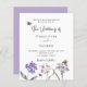 A white background. Decorated with bees and painted wildflowers in violet and pink. Personalize and add your names and the details.
