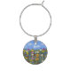 Wine glasses charms and tags with images of beauiful wildflowers and personalized text.