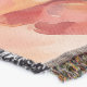 A quality printed throw has its advantages. This is a much finer weave throw than its loopier cousins, and though lighter, it is worth the investment for custom room accessorizing. The back is much prettier than the typical brown, and the fringe on the long sides very vivid, the selvage nicely done. Before photographing, I washed the throw in cold water, delicate, with a thicker woven throw the same size. On tumble dry low, this throw was dry in half the time as the other. This is a very practical quality if you use throws for furniture covers or to wrap up in frequently. The sleekness of the fabric makes it a great layer for accenting or protecting without the feeling of sitting on too much stuff. Perfect for napping or when you feel a light chill coming on. The color printing is beautiful and on this fabric, matched the design and color of my Photoshop image. This is an advantage for blending room fabrics and colors. The fringe on the short sides prints the colors from the design image and therefore varies from the side fringe. I streaked a white fractal line through the plaid pattern to give the illusion of weaving. This printed as crisp as an illusory thread, and put some white in the short side fringe, showing another advantage of print vs loomed- for artistic purposes, line lines, detail, and color integrity can be planned and preserved. My loomed throws have color limitations and more of a needlepoint texture. Print throws reproduce an exact image. The throw felt a little stiff straight out of the package, but this went away in the first delicate wash. Of course I searched the wash water for ink or bleeding and there was none.