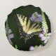 This round pillow features a pretty butterfly gathering nectar from lavender flowers in the garden.