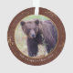 Our commemorative wildlife photo ornament is the perfect keepsake for a favorite photography adventure. The design is bordered in brown with gold branches and gold speckle accents. Replace the placeholder photos with two of your favorites and add short photo captions or the year to either or both sides. Placeholder bear photos by Tapani Hellman via Pixabay. #Ornament #Wildlife #Keepsake