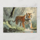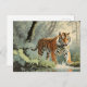 A beautiful tiger walking in the forest. Vintage style postcard.