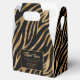 Embrace your wild side with this glam safari-themed bachelorette favor box. Featuring a black and gold zebra pattern background and gold edged frame for your text. this tag exudes exotic luxury. The frame highlights 'Thank You, we're wildly happy you're here” typography in shiny gold lettering. Fully customizable to suit your safari party or bachelorette weekend, this favor box is ideal for a glamorous safari, jungle, or animal print-themed celebration. Search ID1151 to see other products in this fun bachelorette design set.